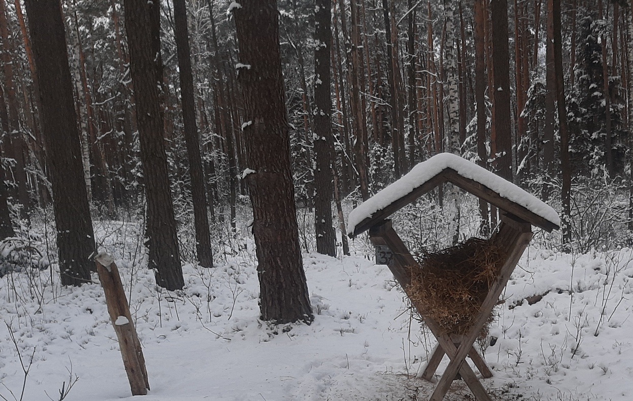 Pod okiem Prezesa Koła i kolegów myśliwych dzieci rozsypywały przygotowane kasztany w wyznaczonych miejscach oraz uczyły się rozpoznawać tropy zwierząt, które przychodzą pobierać karmę. Dowiedziały się jakie gatunki żyją w ich okolicy i jakich pokarmów potrzebują. Zapoznały się jak bardzo ważną rolę w diecie zwierząt odgrywa sól umieszczana w specjalnych lizawkach. Kolega Stanisław Siuzdak opowiedział o ciekawym sposobie znakowania drogi używanym przez dawnych myśliwych i leśników. Komunikacja Złomowa polegała na oznakowaniu kierunku marszu,  ucieczki zwierzyny, czy też odnalezionych tropów za pomocą ułamanych gałązek, odpowiednio okorowanych i ułożonych na ziemi.
