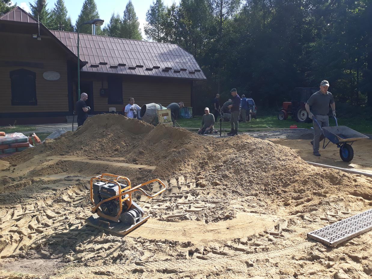 W czasie dzisiejszej akcji odnowiono infrastrukturę ogrodową Osady Myśliwskiej MARYSIN, ułożono 50 m2 kostki brukowej pod nowo zakupione namioty ogrodowe, wykonano pod nie instalację elektryczną. Na terenie łowiska przeprowadzono konserwację urządzeń łowieckich