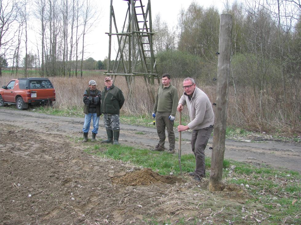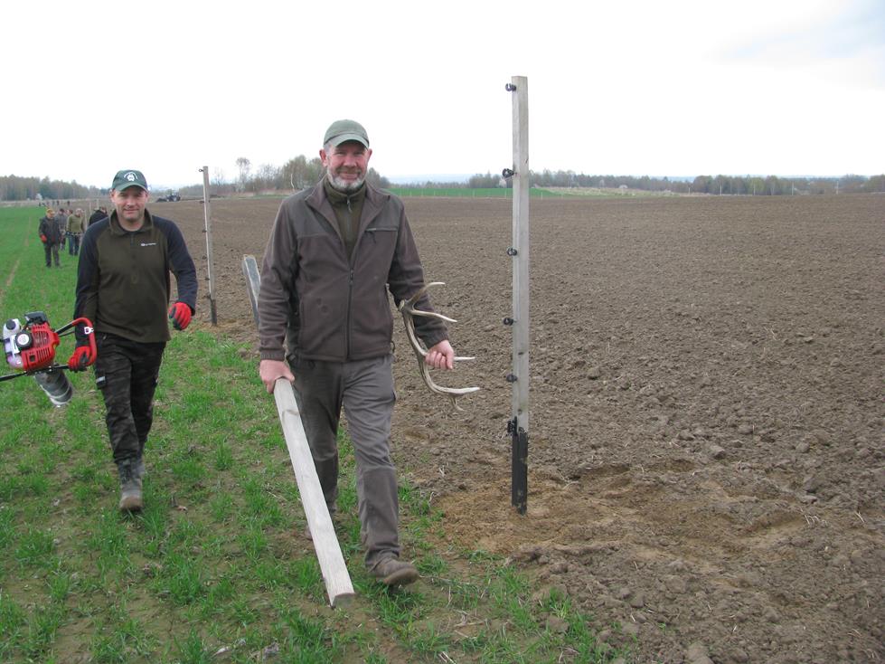 Myśliwi Koła pracowali dzisiaj przy grodzeniu pastuchem elektrycznym upraw rolnych. Ogrodzono te pola, które są najbardziej narażone na zniszczenia przez zwierzynę leśną. W sumie ogrodzono ponad 12 hektarów. Mamy nadzieję, że wpłynie to znacząco na pomniejszenie wypłat rekompensujących straty rolnikom.