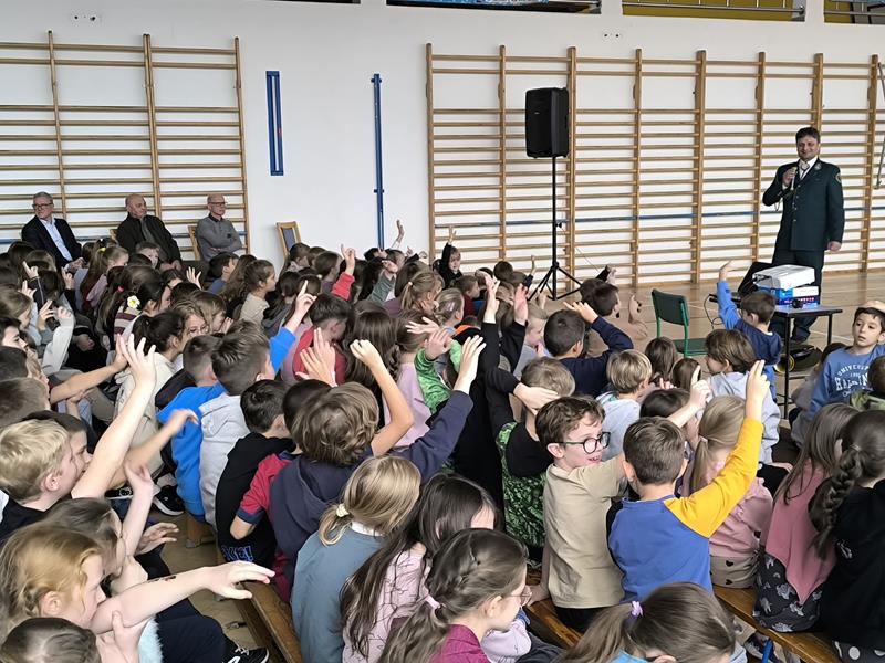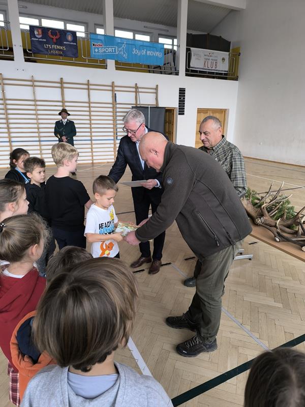 Dyrektor Pan Filarowski podziękował myśliwym za tak duże zaangażowanie w edukację dzieci i młodzieży oraz za wspaniałą i niecodzienną oprawę dzisiejszej uroczystości.