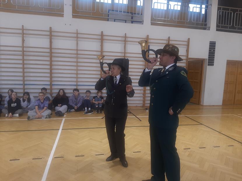 W dalszej części uroczystości kol. Stanisław Siuzdak, opowiedział o sygnałach myśliwskich, które stanowią oprawę polowań i uroczystości łowieckich, po czym odbył się krótki koncert sygnałów myśliwskich, które uświetniły uroczysty apel. W kolejnej części dyrektor Szkoły Podstawowej Nr 3 w Leżajsku Pan Stanisław Filarowski wraz z Prezesem kol. Stanisławem Bukowskim wręczyli dyplomy i nagrody ufundowane przez Koło Łowieckie wszystkim uczestnikom akcji zbierania karmy dla zwierząt leśnych. Najwięcej kasztanów i żołędzi zebrała Milena Pęcak uczennica klasy III, jej tegoroczny wynik to 268 kg. Ogólnie zebrano w tym roku 1200 kg karmy, która została przekazana do Koła Łowieckiego. Dyrektor Filarowski podziękował również myśliwym za tak duże zaangażowanie w edukację dzieci i młodzieży oraz za wspaniałą i niecodzienną oprawę dzisiejszej uroczystości. W podziękowaniu dla wszystkich uczestników tegorocznej akcji sygnaliści odegrali sygnał „Król Polowania”.